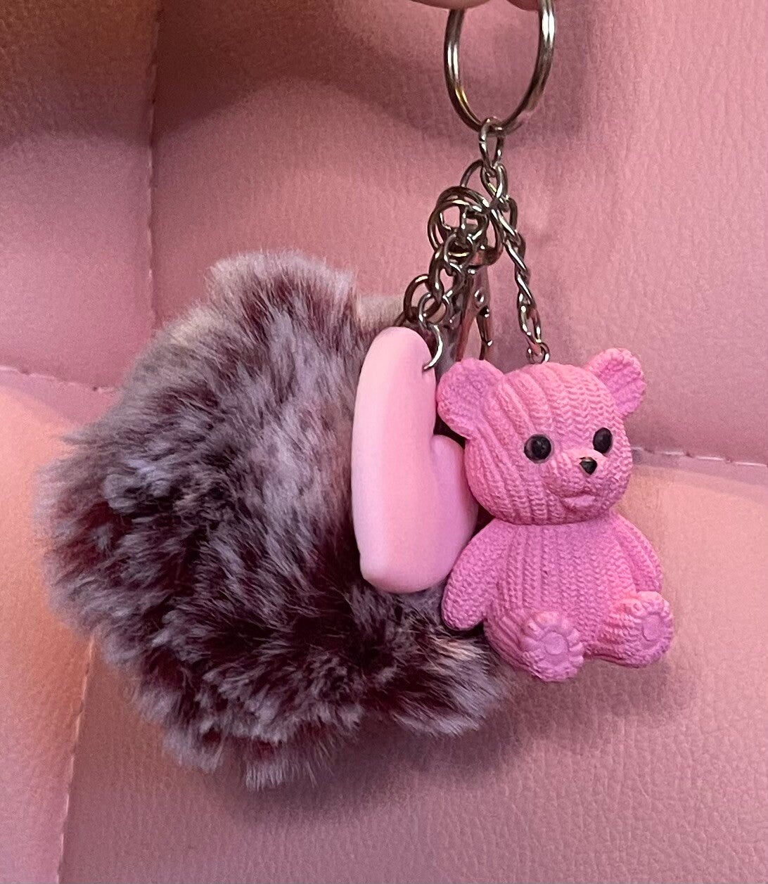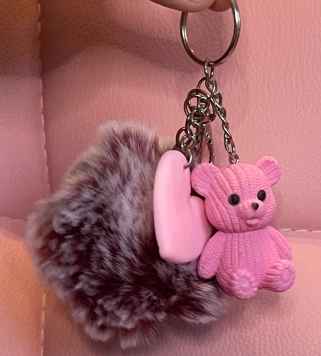 8051Sleutelhanger pompom Roos/ Bordeaux hartje