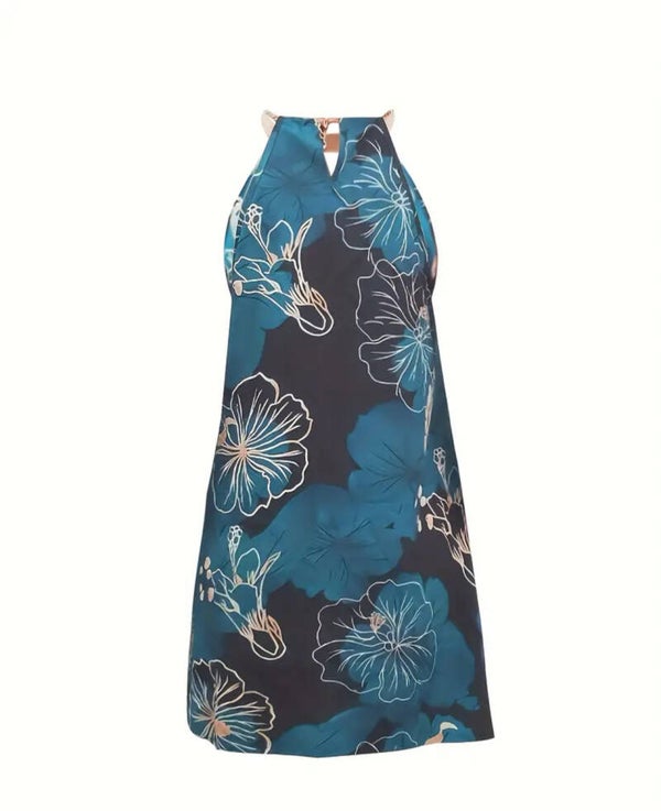 Zeer lichte jurk met een speciaal detail aan de hals voor de jurk te dragen
