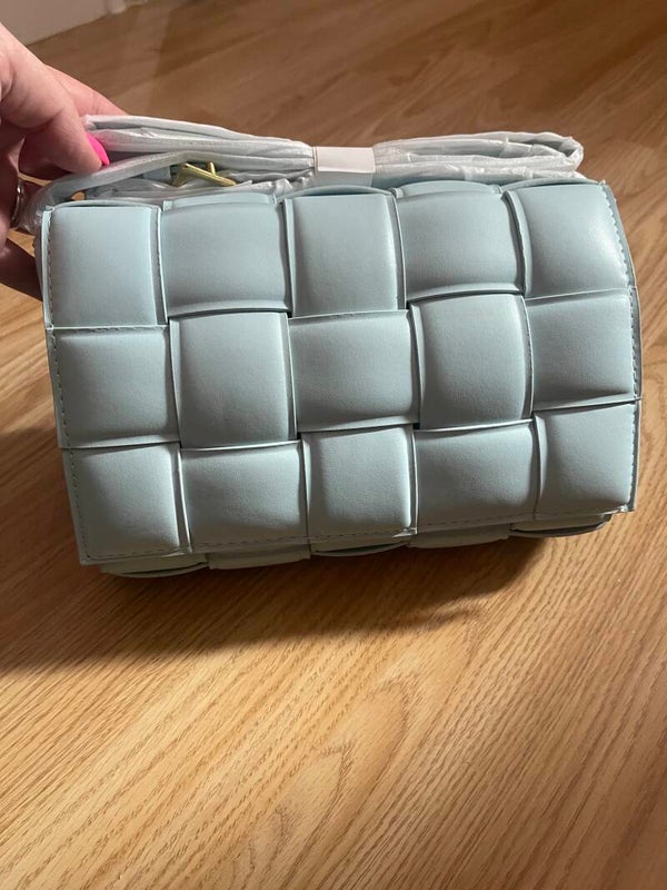 Zeeblauwe /licht blauw gevlochten handtas