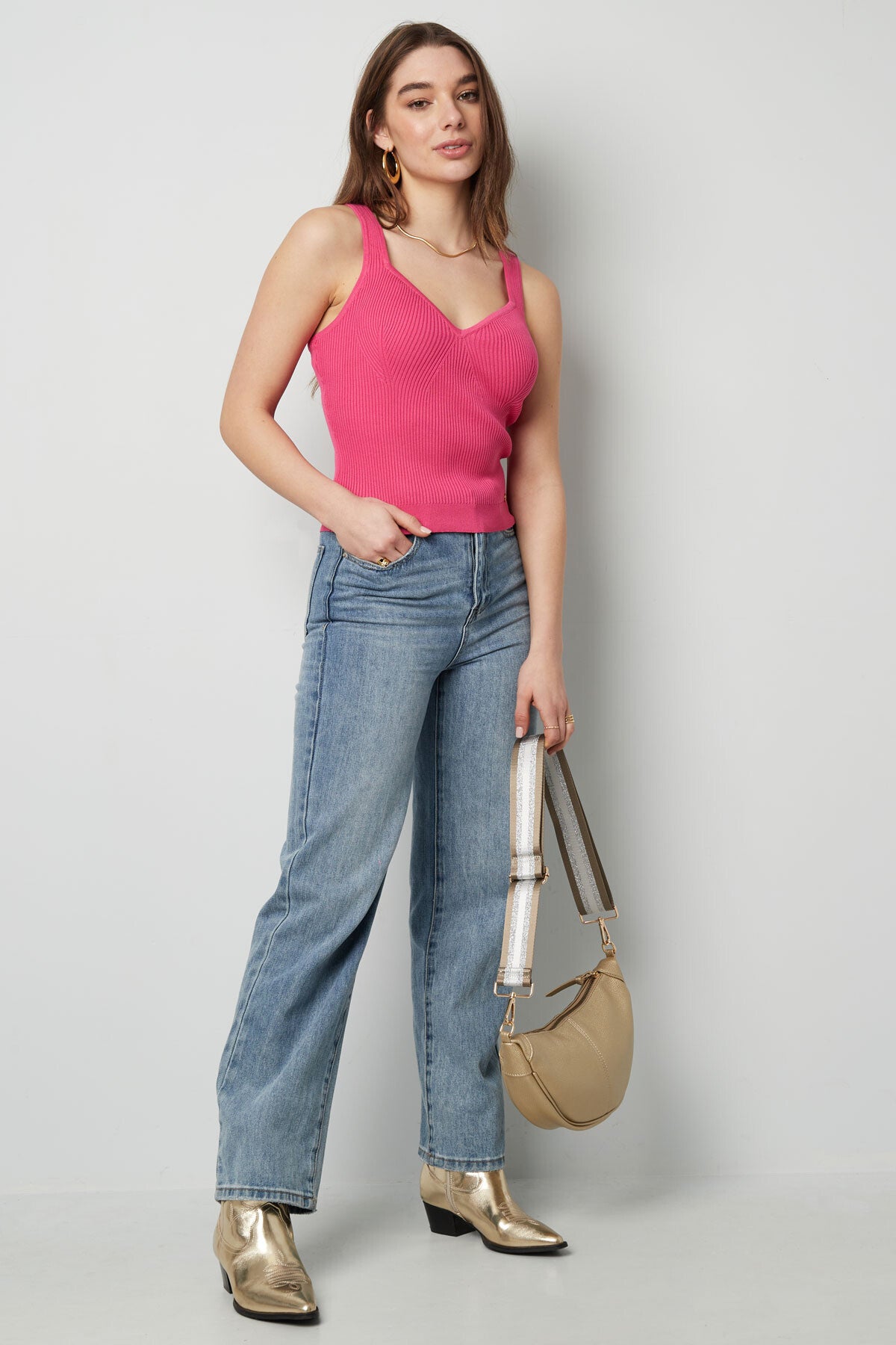 gebreide basic top roze