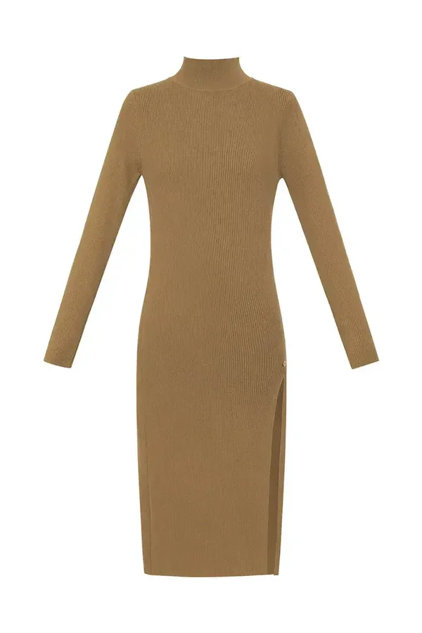 midi jurk met split beige