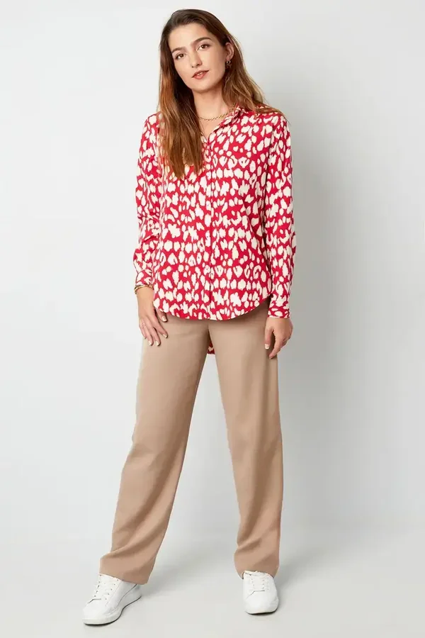 blouse met panter print rood