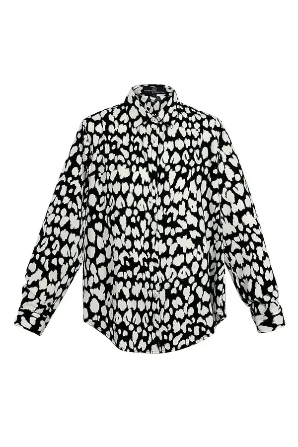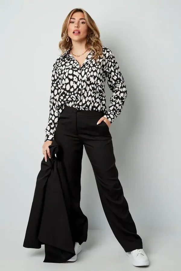 blouse met panter print zwart