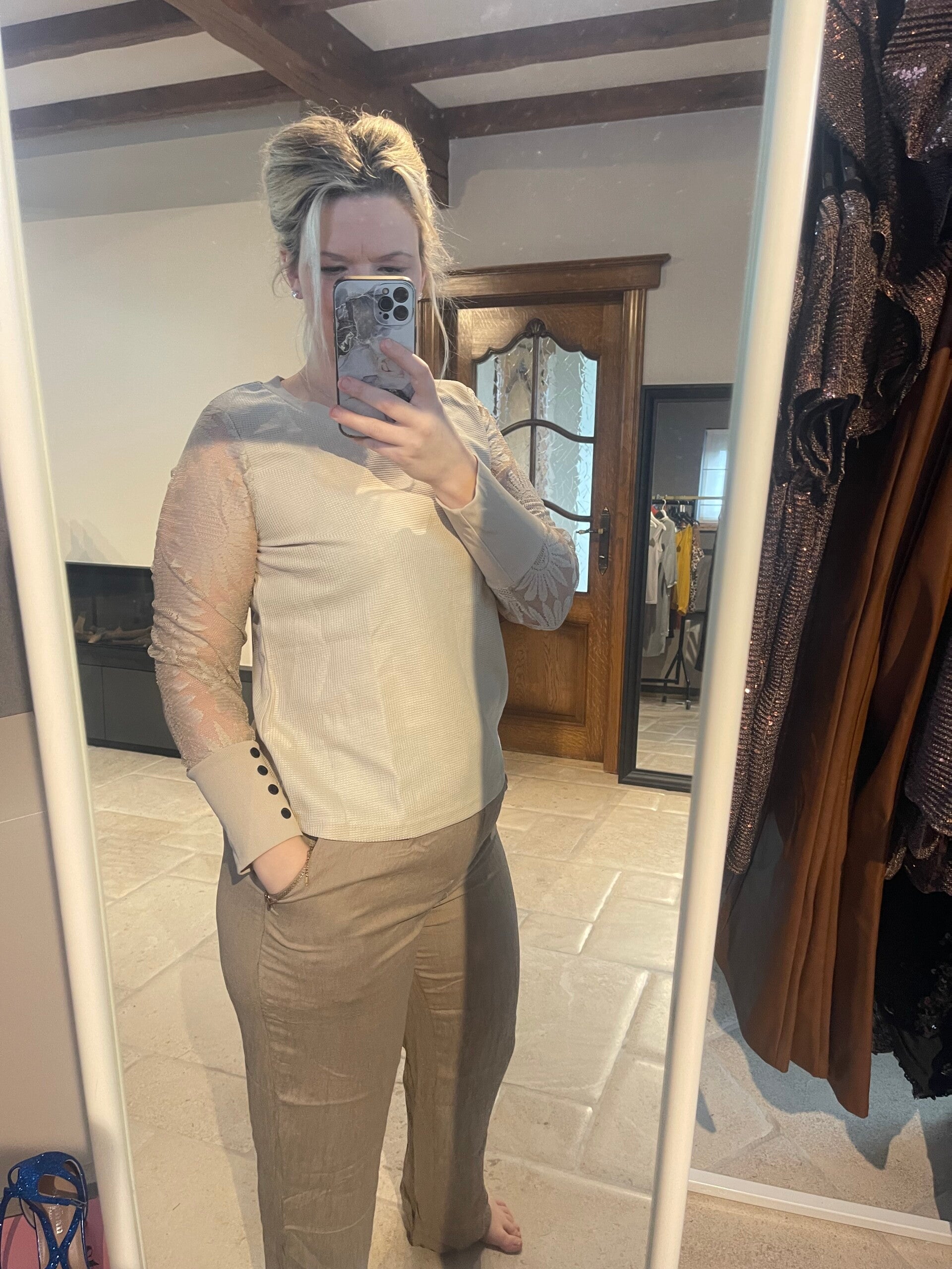 Beige top met accent mouw