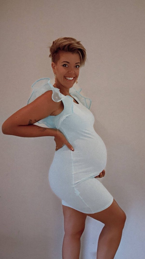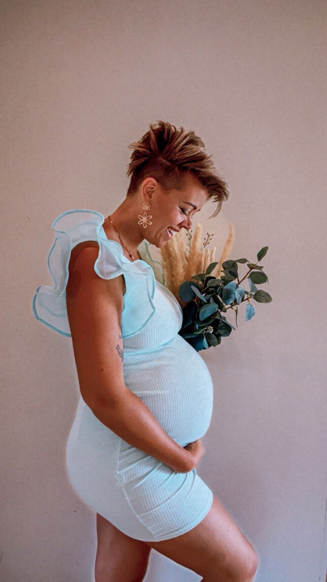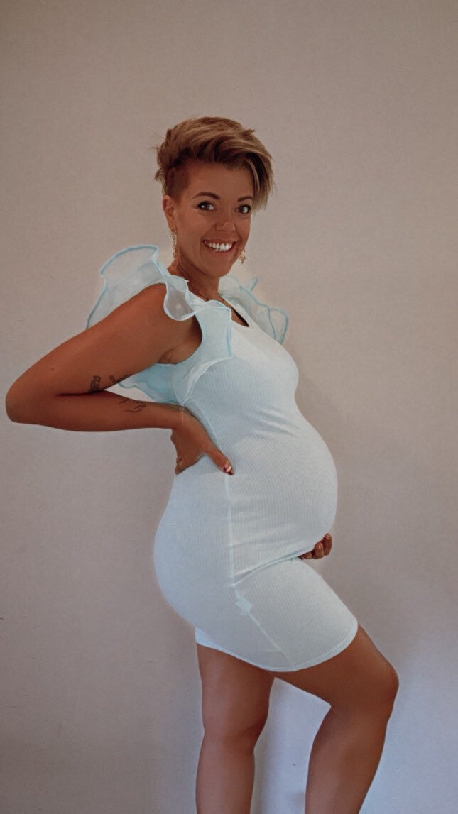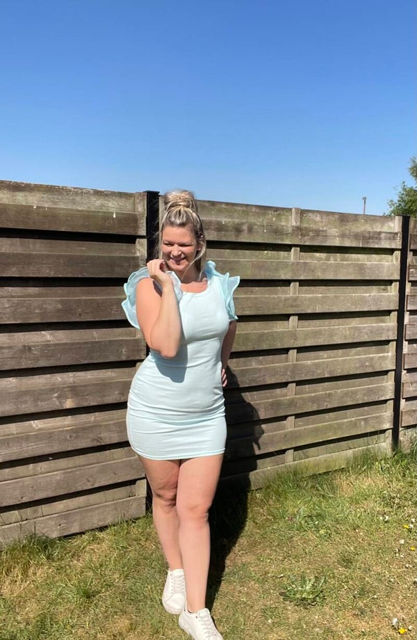 Strech jurk met super leuk detail aan de mouw