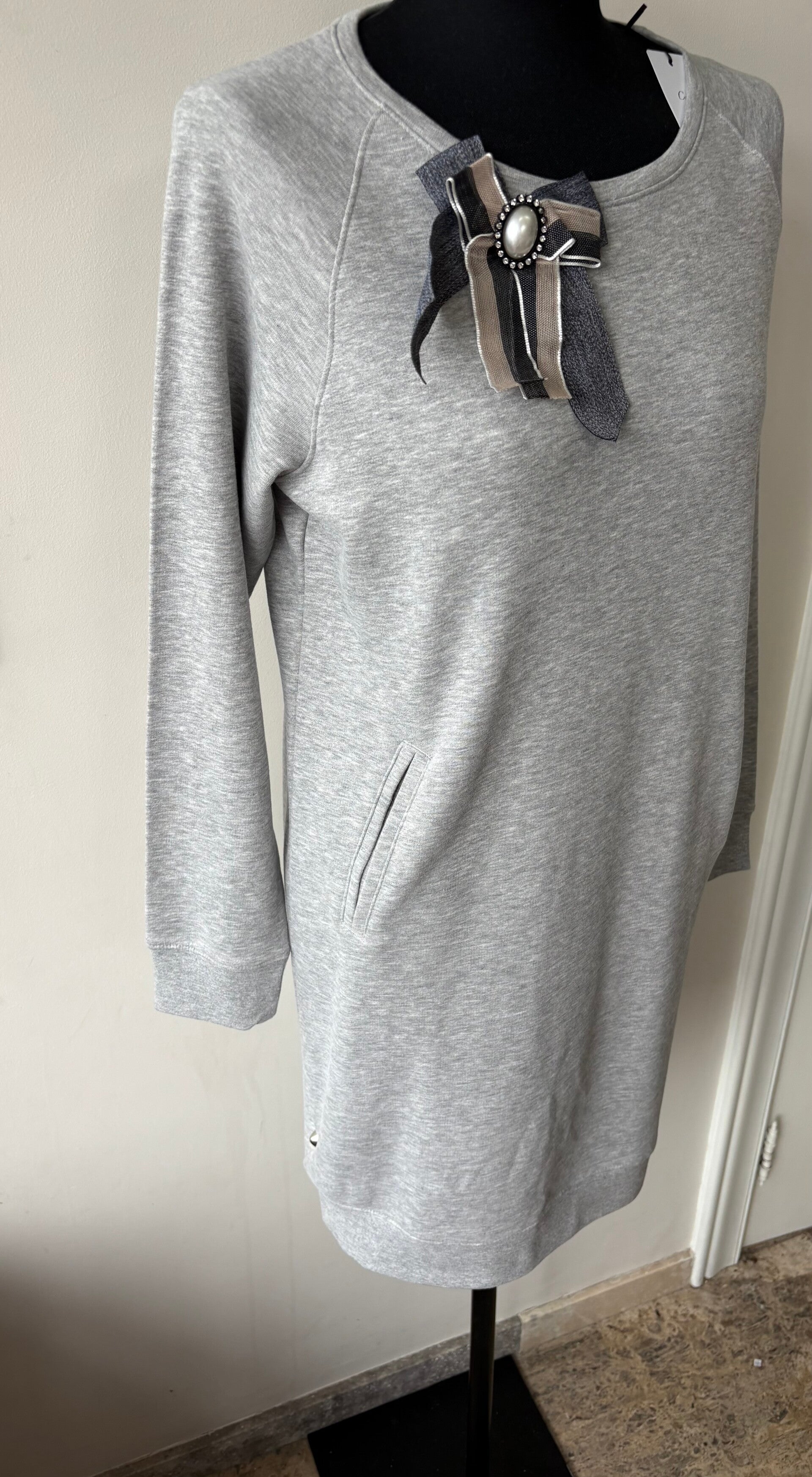 Sweater jurk grijs /met strik accessoires