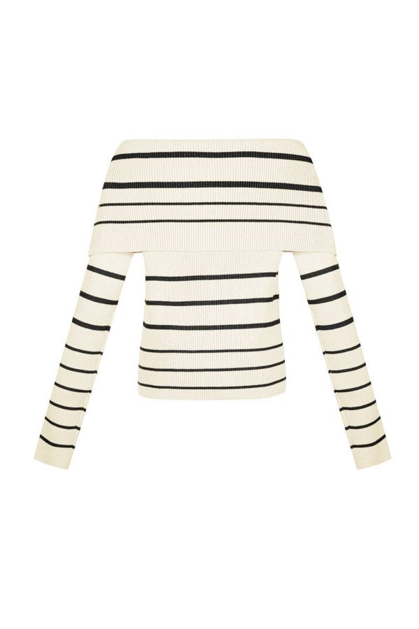 Gestreepte off schoulder trui beige