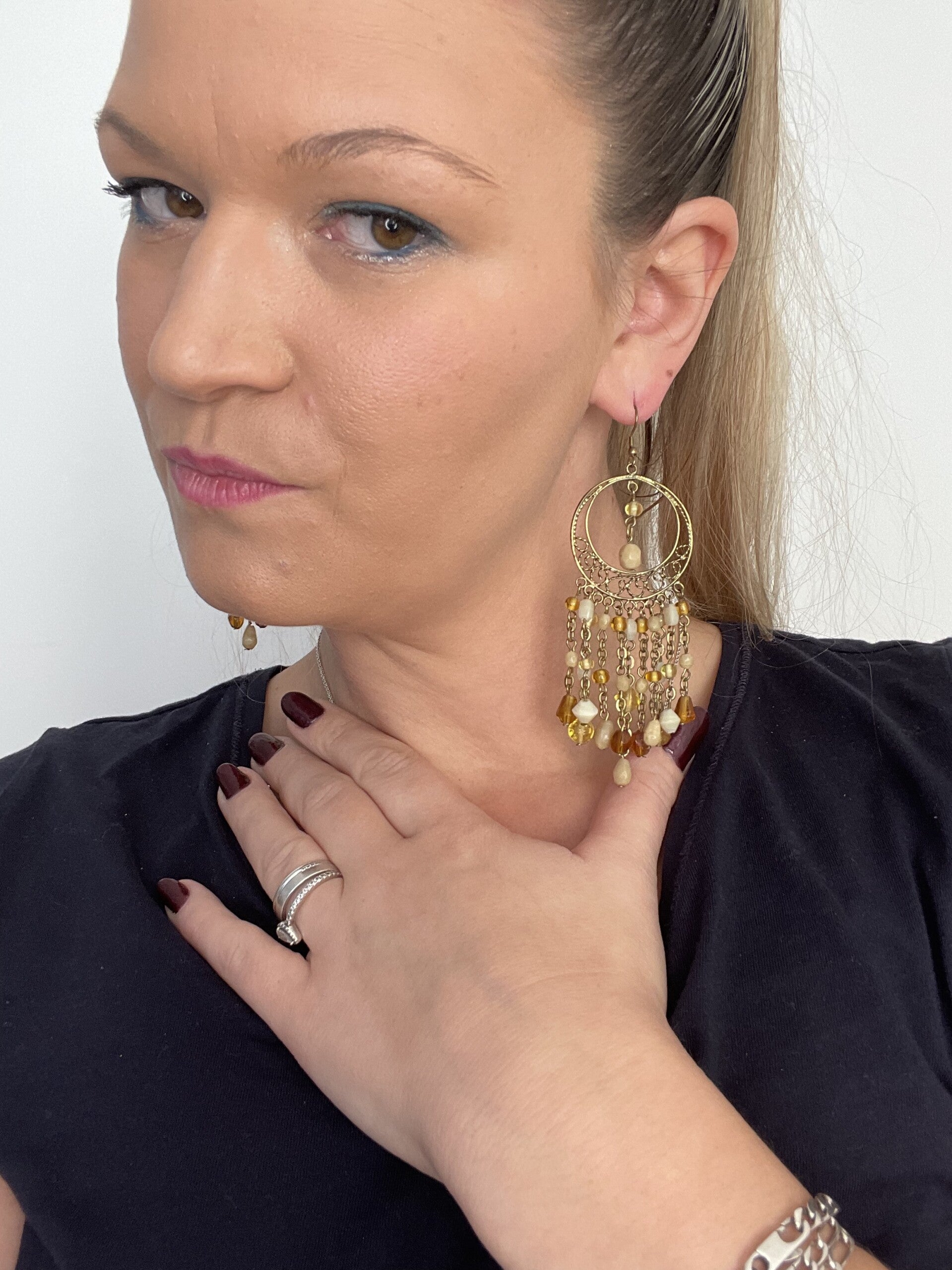 Oorbel afhanger oker geel